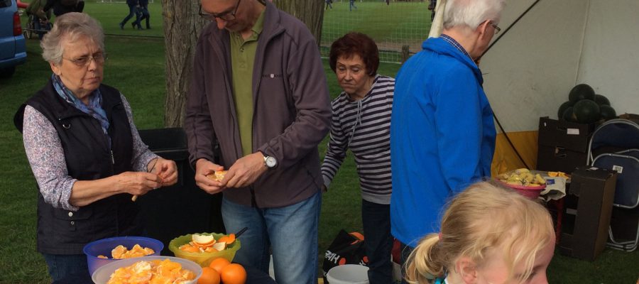Bei gutem Laufwetter war die schon traditionelle Aktion des SPD OV Emsdetten, Obst an die Sportlerinnen und Sportler zu verteilen,